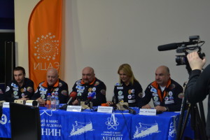 9 марта в Информационном центре по атомной энергии г. Мурманска на ледоколе «Ленин» состоялась пресс-конференция членов подводного научно-исследовательского отряда Русского географического общества им. Алексея Леонова, которые 5 марта текущего года установили новый мировой рекорд подледного погружения на Белом море.