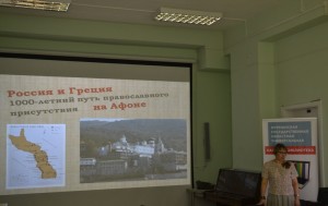 Доклад и презентацию «Россия и Греция: 1000-летний путь православного единства» представила ведущая конференции Светлана Дячок, главный библиотекарь отдела краеведения МГОУНБ.